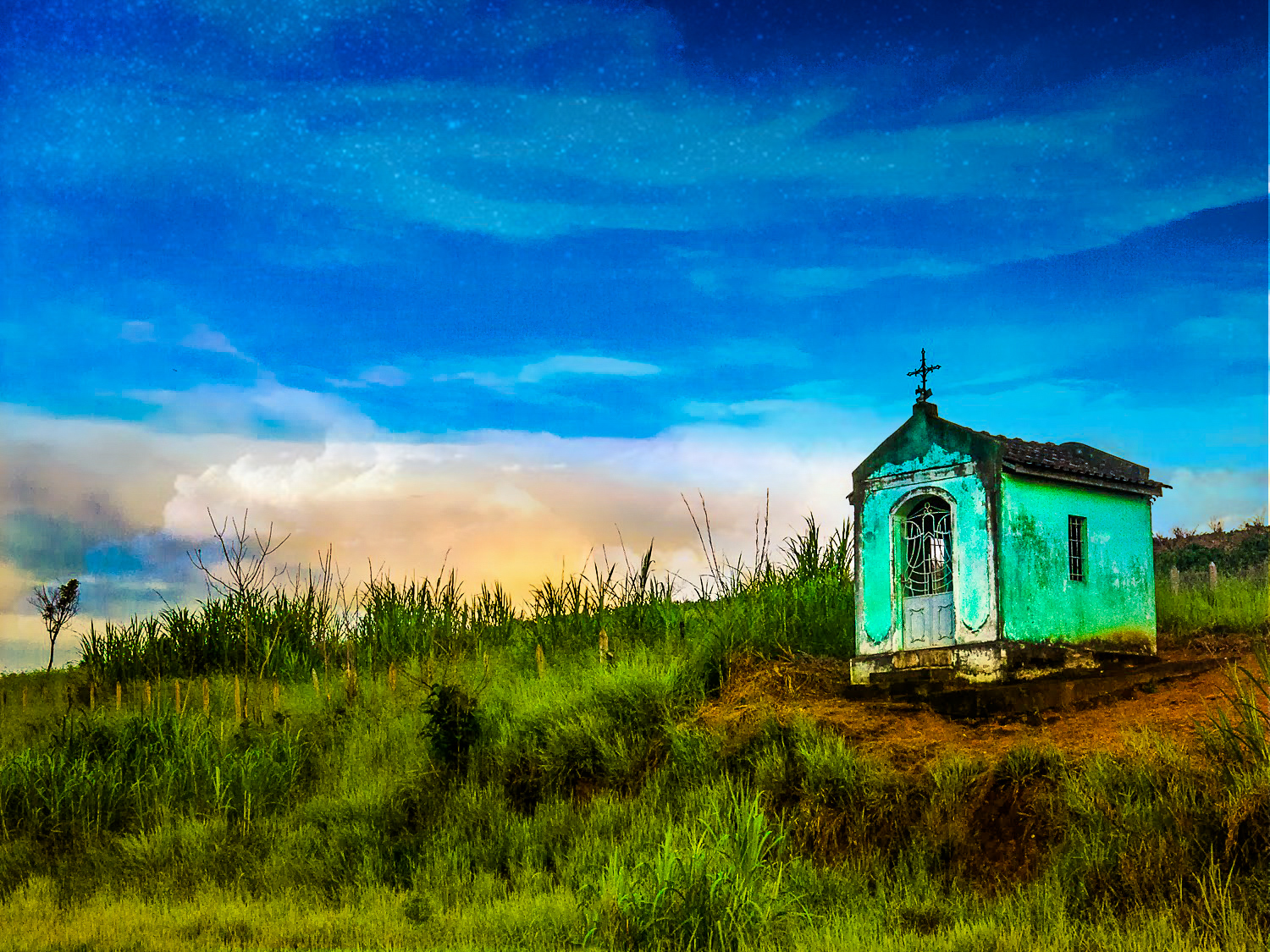 À beira do asfalto havia um posto avançado das peregrinações rumo ao sul afora, a casa de louvor dos andantes. Murmuravam da terra para clamar o céu.