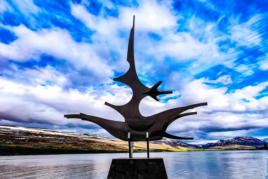 Escultura “Navegação”, de Jon Gunnar Arnason, em Akureyri, Islândia